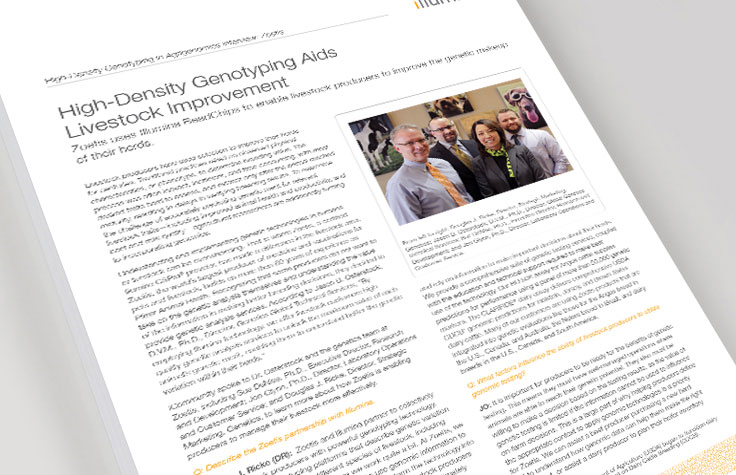 Animal identity verification and parentage are essential tools in maintaining the biosecurity of the world’s animal populations. Illumina genotyping platforms offer the speed, reliability, and throughput needed to track animals from birth, with the flexibility to perform iterative testing as necessary. The high throughput offered by genotyping is especially valuable for commercial agriculture applications that require large-scale production.